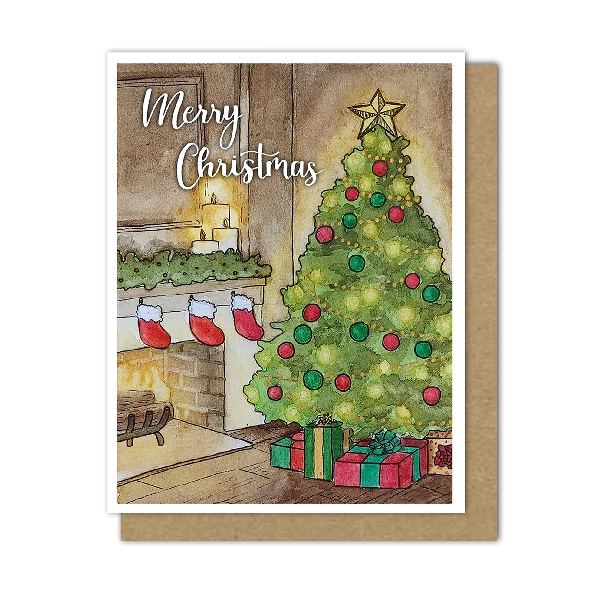 Greeting card decorated with a traditional Christmas scene. Can't you just hear Nat King Cole singing, "Chestnuts roasting on an open fire..."