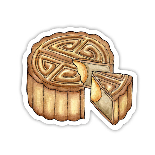 The mooncake is a tasty dessert traditionally eaten during the Mid-Autumn Festival. This sticker is of a Chinese mooncake filled with lotus seed paste and salted egg yolk.