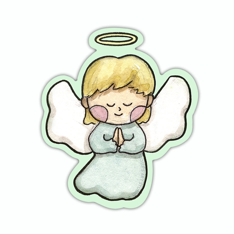 This cute sticker is of a praying angel that is like a little guardian watching over you wherever you decide to put it.