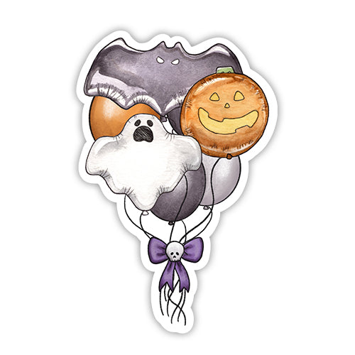 The Spooky Balloons sticker is designed with an adorable variety of Halloween balloons--a bat, a pumpkin, and a ghost. They're all tied together with a purple skull-adorned bow.