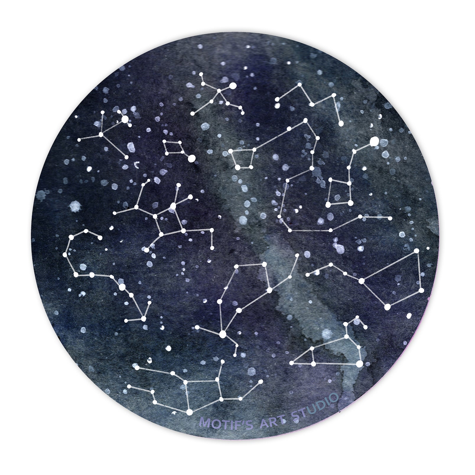 This sticker features a watercolor painting of the summer night sky in the northern hemisphere.