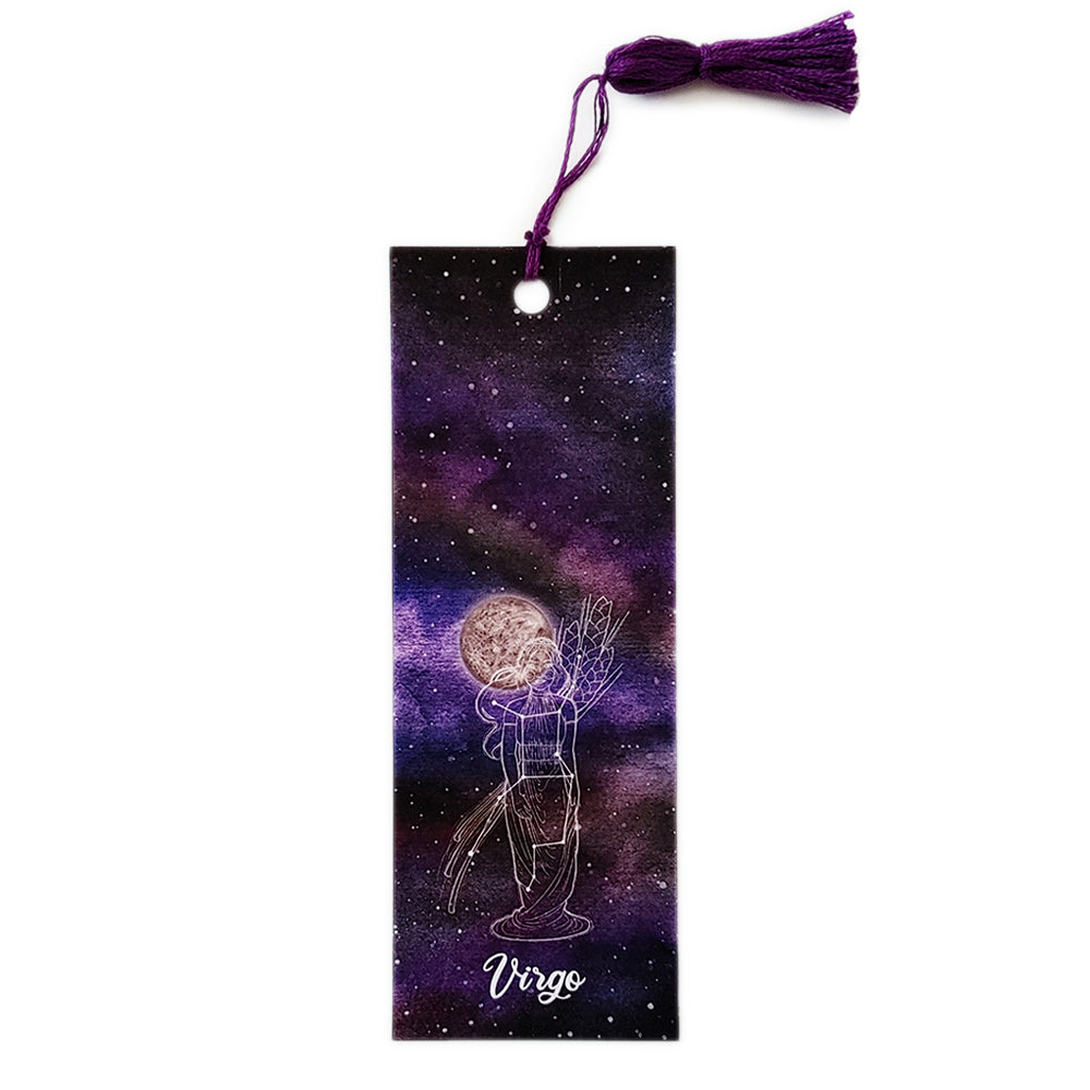 This astrological bookmark was inspired by the beautiful night sky and classic Greek mythology. It was originally painted with watercolor. Each design has a zodiac sign with its own mythological representation, constellation, and ruling planet.